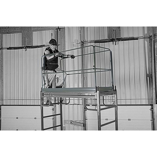 Guardrail Scaffold, Length 5-3/4 ft., Width 29-5/16 In., Overall Height 3-29/64 ft., Material Steel, Finish Enamel, Standards ANSI, CSA, OSHA, Includes (2) Side Rails, (2) End Gates, (4) Lock Nuts, (4) Locking Toggle Pins