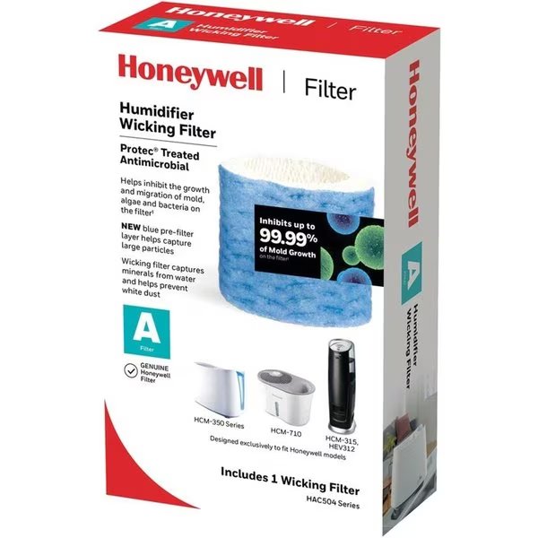 The Honeywell HAC-504 replacement filter is an ideal replacement for natural cool moisture humidifiers and will greatly assist in the removal of minerals and pollutants from the water. The Protec antimicrobial treatment helps prevent the growth and migration of mold fungus algae and bacteria on the filter. Featuring an optimized filter design the Honeywell HAC-504 allows for the maximum in moisture output.