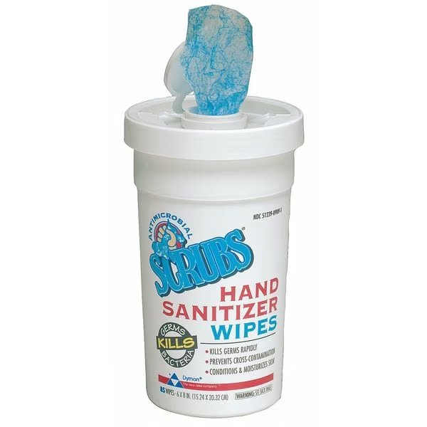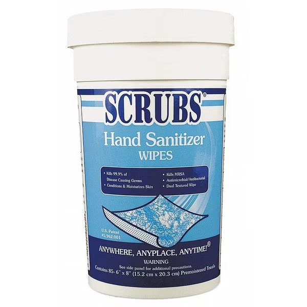 Hand Sanitizer Wipes, Container Type Canister, Flushable No, Form Wipes, Formula Ethyl Alcohol, Fragrance Alcohol, Hygiene Properties Not Applicable, NSF Rating Not Rated, Series None, Standards Not Applicable, Wipe Length 8 in, Wipe Width 6 in, Wipes per Container 85, Product Type Hand Sanitizer Wipes, Color White, Requires Dispenser No, Grainger Dispenser Part Number Not Applicable, Manufacturer Dispenser Part Number Not Applicable