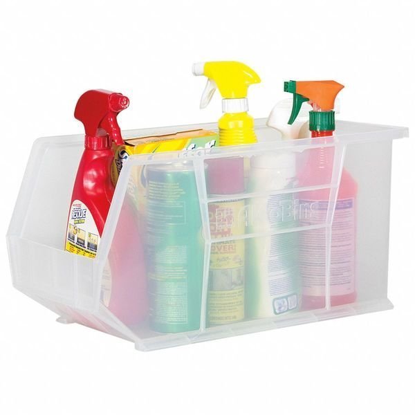 Hang & Stack Storage Bin, Plastic, 8 1/4 in W, 9 in H, 18 in L, Clear, Akro-Mils, Mfr#: 30265SCLAR