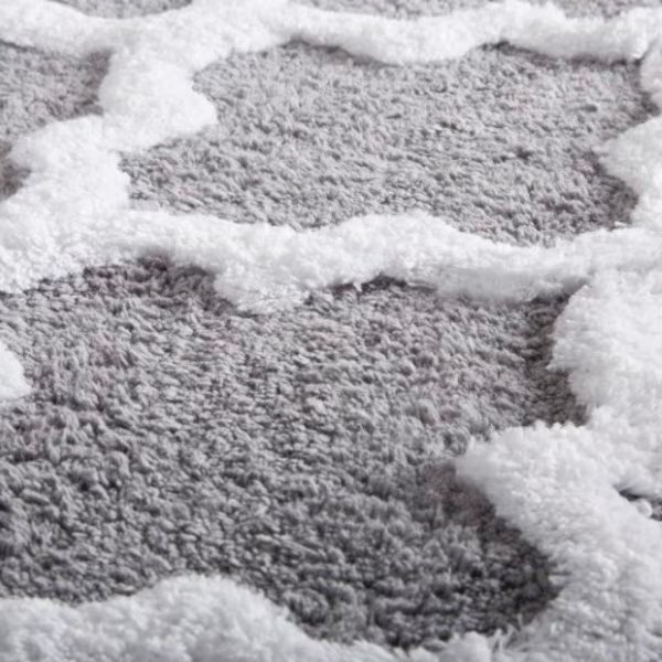 Bring life to your bathroom with the premium 100 Percent Cotton 2 Piece Trellis Bathroom Mat Set. The Trellis pattern brings a European regal look right to your bathroom. A transparent anti-skid spray latex backing is added for keeping rugs safely in place. These super absorbent 100 Percent cotton rugs are machine washable. Extremely plush with cut loop velour finish, this bath mat set feels as luxurious as it looks.