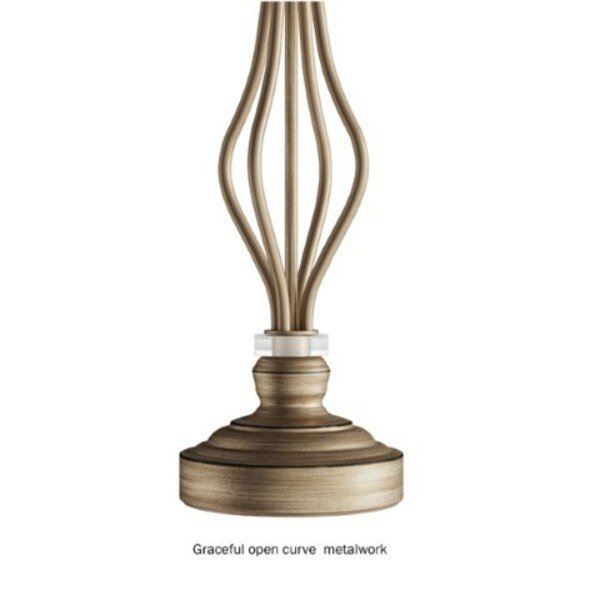 This set of Gold Curved Openwork Lamp Set from Hastings Home illuminates your space while adding a touch of elegance to your home. The modern rustic curved bases are paired with natural linen drum shaped fabric shades for a transitional style that's perfect for your living room, entryway, bedroom, or office. The two table lamps and one floor lamp each come with an energy-efficient 9W 805 lumens LED bulb that will brighten your room for 25,000 hours before needing to be replaced.