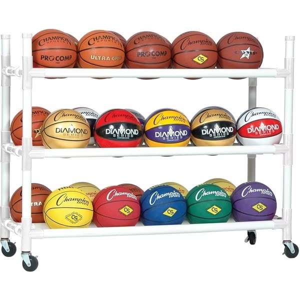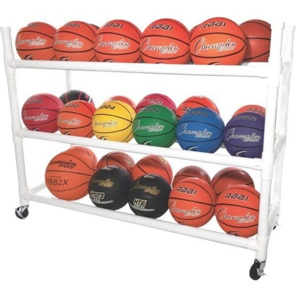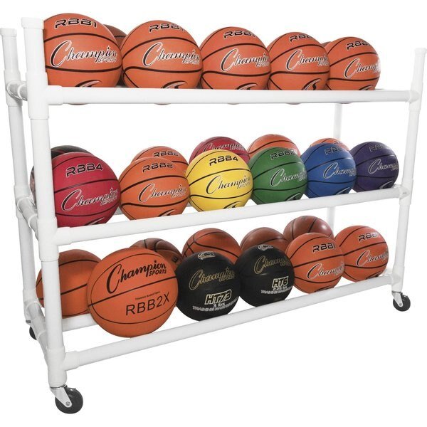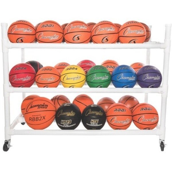 Ball Rack, Color White, Product Type Ball Rack, Material Plastic, For Use With Basketballs, Overall Width 19 in, Overall Length 55 in, Overall Height 45 in, Capacity (30) Basketballs