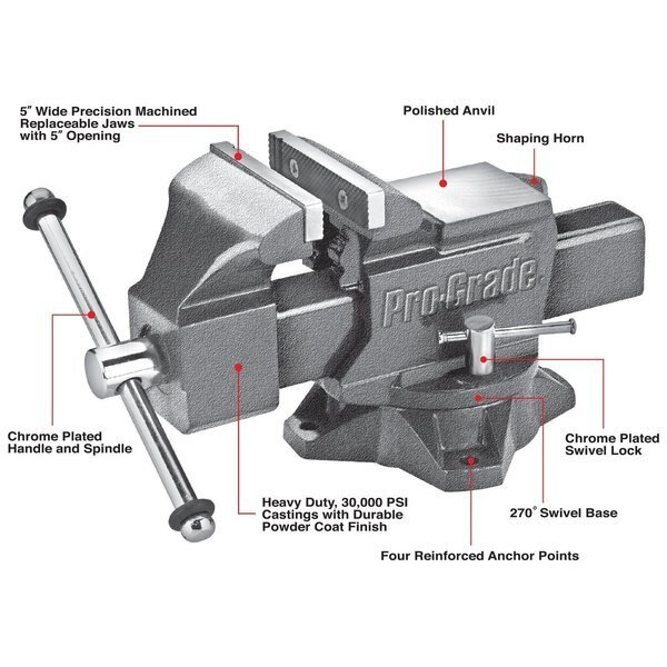 Heavy Duty Swivel Bench Vise, 5", Pro-Grade Tools, Mfr#: 59114