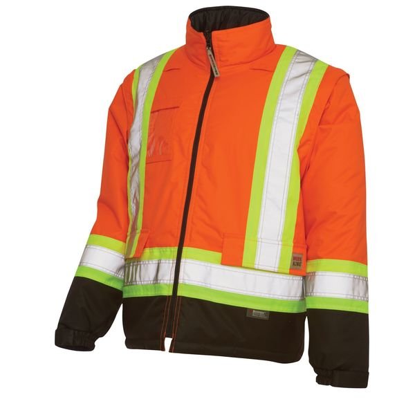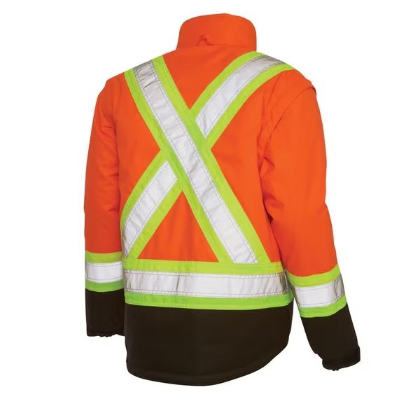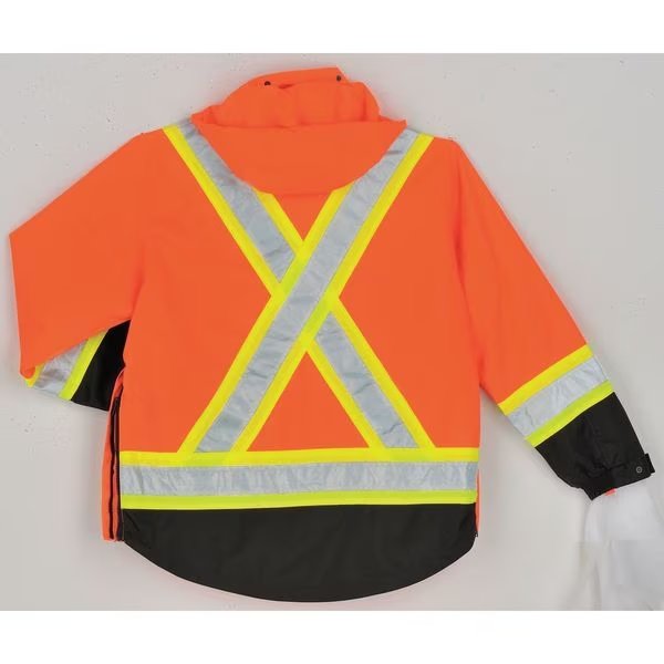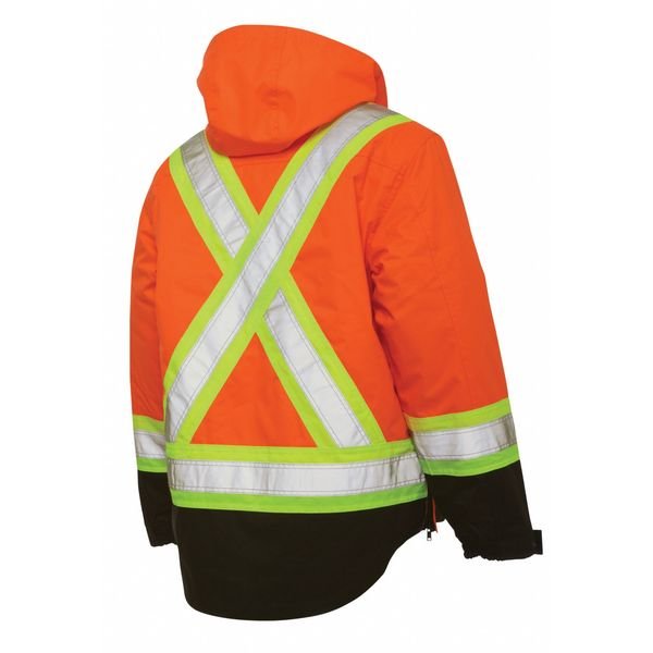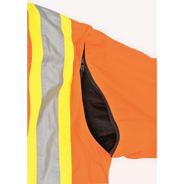High Visibility Parka, Style Parka Jacket, ANSI Class 3, ANSI Type R, Front Closure Type Zipper with Storm Flap, Color Orange, Size M, Includes Hood Yes, Hood Style Detachable, Maximum Chest Size 40 in, Material 100 Percent Polyurethane-Coated Polyester, Includes Removable Liner Yes, Standards ANSI 107-2015 Type R, Class 3, Minimum Chest Size 38 in, Insulated for Cold Conditions Yes, Fabric Weight 300 den, Features Removable Quilted Polyester Liner
