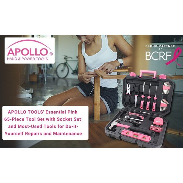 Household Tool Kit, 65 Pieces, Pink, Apollo Tools, Mfr#: DT0001P