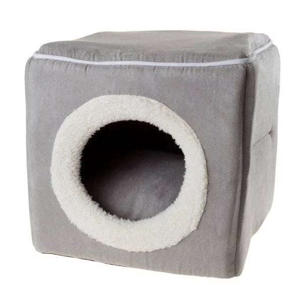 Indoor Cat Pet Bed Cave, Enclosed Cavern with Removable Cushion Pad for Cats/Small Animals | Gray, Pet Adobe, Mfr#: 323530ZYA