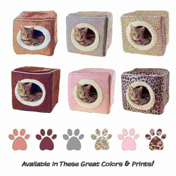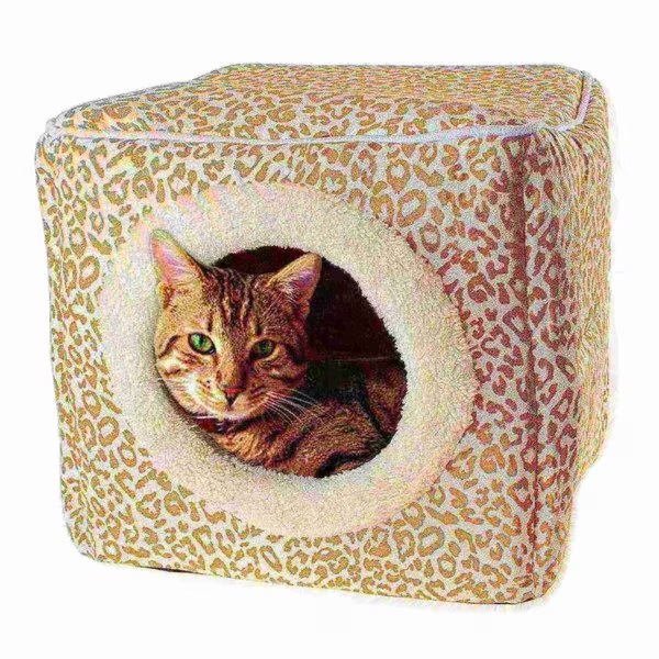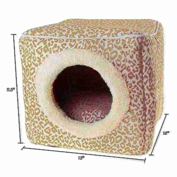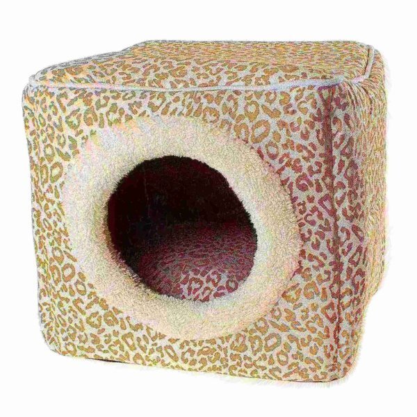 Indoor Cat Pet Bed Cave with Removable Cushion Pad for Cats/Small Animals | Tan/White Animal Print, Pet Adobe, Mfr#: 728420YHZ