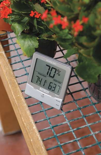 Digital Hygrometer, 14 Degrees to 140 Degrees F/-10 Degrees to 60 Degrees C, 10 Percent to 99 Percent, Primary Scale Humidity, Power Source Battery, Application Indoor, 4.3 in H x 3.9 in W 3-Digit Backlit LCD Display - 1.5 in Digit Height, 4.3 in H x 3.9 in W x 0.78 in D, Surface-Mount, Temperature Scale Celsius, Fahrenheit