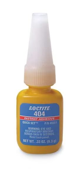 Instant Adhesive, Adhesive Color Clear, Container Size 0.33 fl oz, Container Type Bottle, Cure Method Humidity, Maximum Viscosity 110 cP, Minimum Viscosity 70 cps, Series 404, Built-in Dispenser Type No Dispenser/Applicator, Compatible Accelerator Loctite SF 712, Features Bonding Plastics and Elastomeric Materials Where Very Fast Fixturing Is Required, Low Viscosity, Materials Bonded Metal, Plastic, Rubber, Primary Applications Rubber, Standards 29 CFR 1910.1200, A-A-3097, CFIA