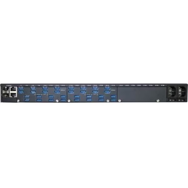 IOLAN SCG34 U-M Console Server: 34 x USB Ports, Front Panel Display and Keyboard, 2 x auto-sensing 10/100/1000 Ethernet Combo Ports (RJ45 or SFP), integrated RJ45 V.92 modem, Micro SD Card Slot, Expandable using IOLAN G16 RS232 Card and IOLAN G16 USB Card, Micro USB and RS232 RJ45 Console Admin Ports, advanced data encryption, user authentication and event management security features included, IPv6, COM port redirector, 15kv ESD, Dual AC Power, USA power adapter included.