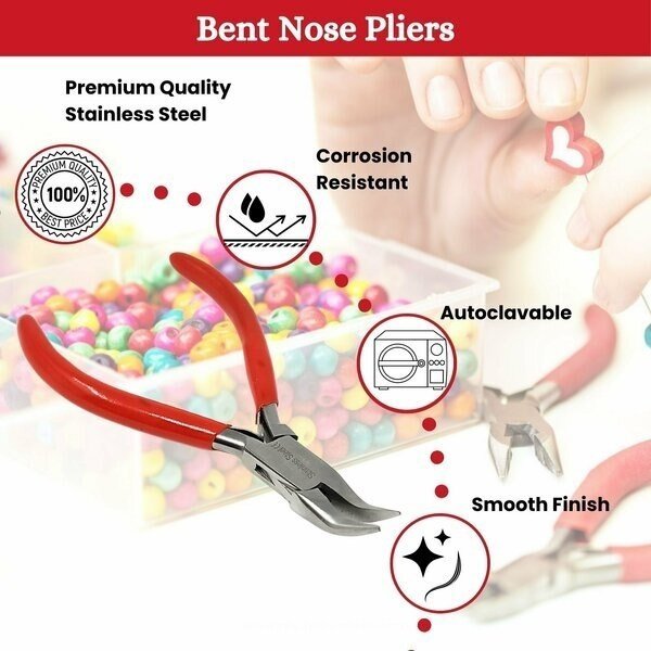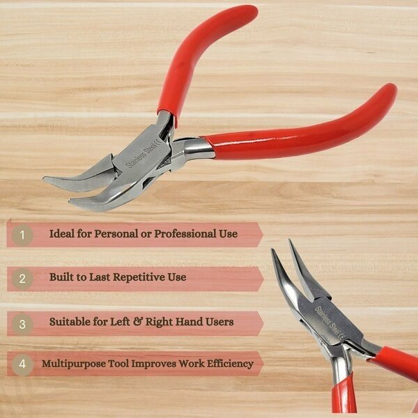 Premium Quality Material-Made from premium grade stainless steel, promising durability, long life span, and anti corrosion properties. Manufactured with a non stick, anti-glare surface and smooth finish.Comfort Grip Handle- Vinyl comfort grip handle provides optimal comfort and firm grip. It's optimum size and design is perfect for strenthening, crimping, opening, and closing jump rings, placing objects, and shaping loops in wires.Repair & DIY Crafts-Jaws are designed to be gentle on the thinnest wires allowing you to twist and bend materials without damaging the design. Commonly used to bend ring shanks, shape earring wires, construct intricate designs, gripping gems, and manipulating bead settings.Improves Work Efficiency-A user-friendly tool which is an ideal choice to improve work efficiency. Enables high degree of precision and flexibility for right and left hand users. Versatile & Functional-Durable and convenient to operate, these pliers are ideal for personal or professional use for a wide range of applications. Can be used to service electronics, assemble remote control cars, terrain or model airplanes.