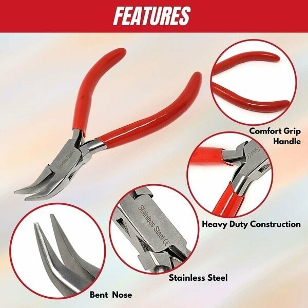 Jewelry Making Pliers Bent Nose Professional Repair Stainless Steel Tool with Cushion Grip, A2Z Scilab, Mfr#: A2Z-ZR945