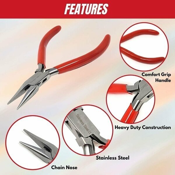 Jewelry Making Pliers Chain Nose Professional Repair Stainless Steel Tool with Cushion Grip, A2Z Scilab, Mfr#: A2Z-ZR947