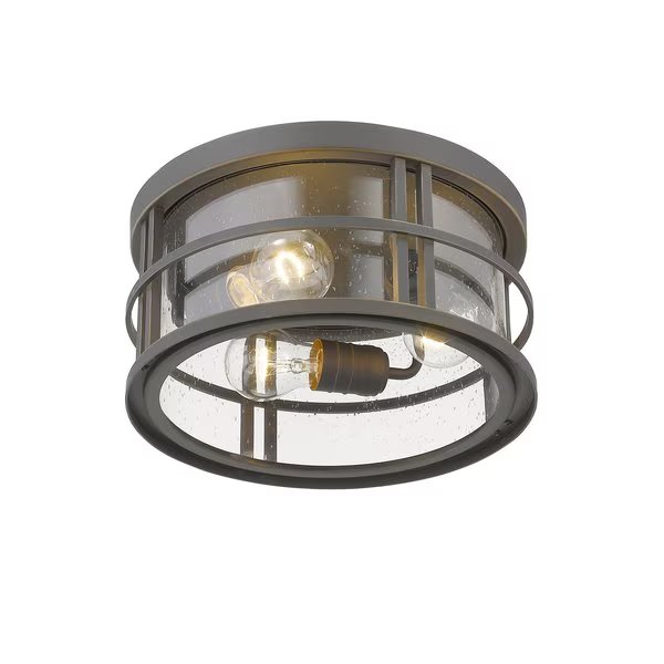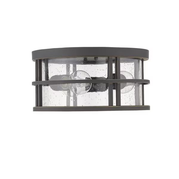 Jordan 3 Light Outdoor Flush Ceiling Mount Fixture, Oil Rubbed Bronze And Clear Seedy, Z-Lite, Mfr#: 570F-ORB