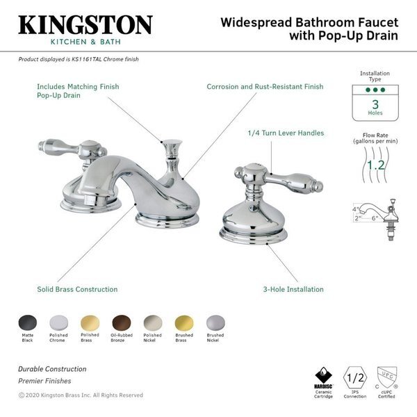 Offering a nod toward the past, this faucet is beautifully inspired by the vintage elegance of mid-19th Century design. Ideal for more spacious bathrooms, widespread faucets are more spread apart and feature a 3-hole installation. The Tudor 8-inch widespread bathroom faucet with brass pop-up and its featured sturdy brass construction and premium matte black finish are guaranteed to glamorize your home's traditional ensemble for years to come. A unique and classically enchanting personality is embodied in this centerpiece. A matching finish drain is also included.