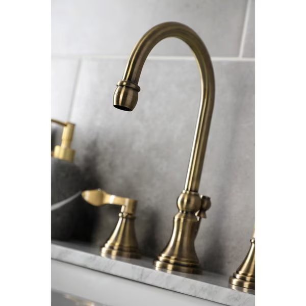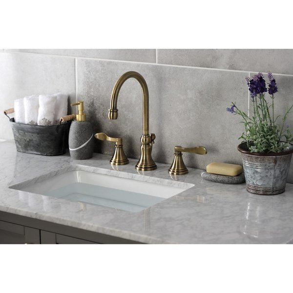 Inspired by Classical Nouveau French styling, this faucet transforms your bathroom into one of exceptional opulence and grandeur. Ideal for more spacious bathrooms, widespread faucets are more spread apart and feature a 3-hole installation. The NuFrench widespread bathroom faucet with brass pop-up and its featured sturdy brass construction and premium antique brass finish are guaranteed to glamorize your home's traditional ensemble for years to come. Engulf your home with the authentic French ambience and attract admiration from guests with this lovely fixture. A matching finish drain is also included.