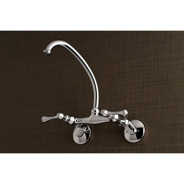 Designed to intertwine exceptional soundness with magnificent grandeur, the Kingston Collection will transform your household fixtures into those only someone of royalty would use. Vessel faucets are designed to handle the extra clearance needed for pairing with a vessel sink. The Kingston 6-Inch Adjustable Center Wall Mount Laundry Faucet and its featured sturdy brass construction, drip-free ceramic disc cartridge for longevity, and premium polished chrome finish, are guaranteed to glamorize your home's ensemble for years to come. A maximum water flow rate of 4 GPM will aid in water conservation efforts, as well. Additionally, the dual handles allow for precise temperature control while enhancing the theme. Brilliantly crafted and designed, this collection is an excellent go-to for any homeowner wanting to replicate the serine and exquisite auras of a professional spa or kitchen.