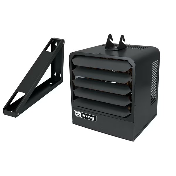 King’s KB series unit heaters are designed for use as primary or supplemental heat sources in large or exposed areas, including high-rise buildings, stores, warehouses, garages, water treatment and fire room vaults to prevent freezing. Spiral finned steel elements and high CFM ensure even air distribution producing cooler element operation, prolonging heater life. By combining the highest quality components, with a dynamically balanced fan blade and in-built thermostat, the KB unit heater will provide years of trouble-free service. Includes universal wall/ceiling bracket for simple installation. Adjustable Louvers to Direct Air. Built-In Fan Delay to Dissipate Heat. High Mass Steel Fin Heat Exchanger. Patented Smart Limit Protection. Permanent Lubricated Unit Bearing Motor. Universal Wall/Ceiling Bracket Included.