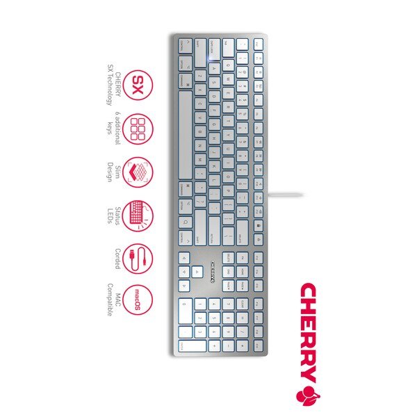 Kc 6000 Mac, White/Silver, Usb, Us Intl 104+6 Key Layout, Cherry Americas, Mfr#: JK-1610US-1