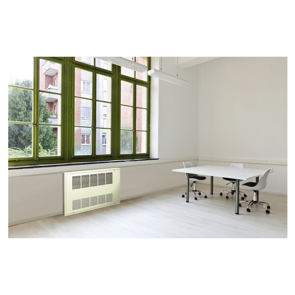 The King heavy-duty KCF cabinet heater can be placed almost anywhere. Typical uses are hall or entryways where a deep cabinet heater would be too intrusive. The slim design is great for schools, office, air terminals, auditoriums, apartments, restaurants, churches, factory’s, theaters and other locations where a clean impact resistant 18 gauge construction and entry way or comfort heating is needed. The KCF uses the time tested ceramic core heating elements that King developed over 50 years ago and have a very long life. Available in a slim 4”surface mount or the recess in wall installation. A sub-base is available when installing close to the floor to fill the gap. Thermostats, Contactors and Disconnect switches are available as options. Textured powder coated finish in an almond color. KCF model adds quiet tangential fans in the bottom of the cabinet to help move the heated air out of the cabinet. KCF model is not for residential use unless you add the Manual reset limit option. Fan-Forced Heat. High Mass Ceramic Heating-Core with Aluminum Fins. Low Noise Squirrel Cage Blower. Capillary Tube Safety Limit. 1 or 3-Phase.