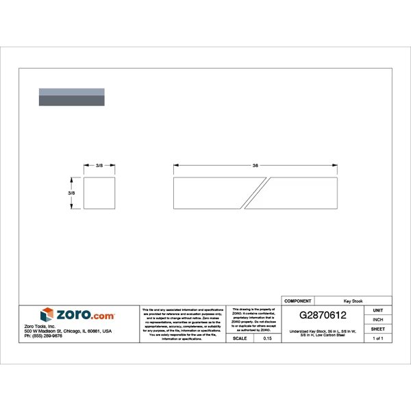 Key Stock,3 ft L,Steel,3/8 in W, System of Measurement Inch, Material Steel, Material Grade/Class Grade 1018/Grade 1045, Finish Plain, Height 3/8 in, Thickness Tolerance +0.000/-0.002 in, Length 3 ft, Length Tolerance +0.000/-0.125 in, Width 3/8 in, Width Tolerance +0.000/-0.002 in, Pack Size Small Pack, Made in North America Yes, Key Shape Straight, Rockwell Hardness HRB 50, Features Magnetic, Tensile Strength 64,000 psi, Manufacturer Location Made in USA*, Material Quality Standards ASTM A29
