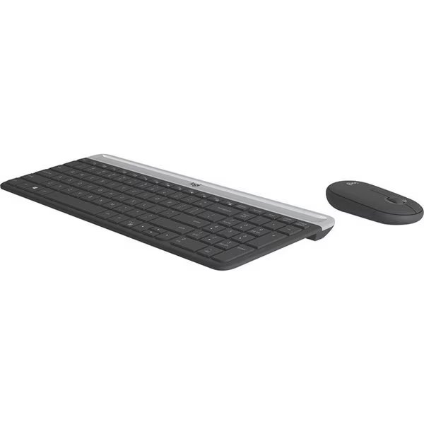 Make any space minimalist, modern and whisper-quiet with this keyboard and mouse combo. The combo's smaller footprint means you can work on the tightest desk spaces and keep your mouse comfortably within reach. Number pad and 12 FN shortcuts give you all the keys you need for efficient data entry in a tight-key layout. Slim mouse is extra-portable, and you can easily store it in your laptop bag or in your pocket for on-the-go productivity. Low-profile scissor keys provide a fluid and familiar laptop-like typing experience. The smooth pebble shape of the ambidextrous mouse feels great in either hand. A quiet keyboard and lab-tested, 90 percent noise-reduced mouse provide an ultra-quiet work experience for you and those around you. A simple, plug-and-play USB receiver offers a strong, 2.4 GHz wireless connection with 10 meters of range and gives you the freedom to arrange your devices the way you want.