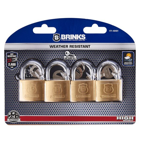 Keyed Alike Padlock, Brass, 40mm, High Security 4 PK, Brinks, Mfr#: 171-40401