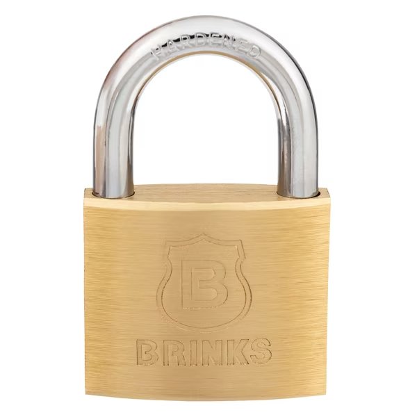 Brink’s Brass Padlock features a 40mm solid brass body and a chrome plated, hardened steel shackle for increased cut resistance. It is equipped with a five-pin brass tumbler cylinder and double brass bolt locking mechanism for pick resistance. With corrosion-resisting properties, brass is perfect for use indoors and outdoors. The padlock is Ideal for all types of usages such as locking and securing lockers, storages, garages, and toolboxes.