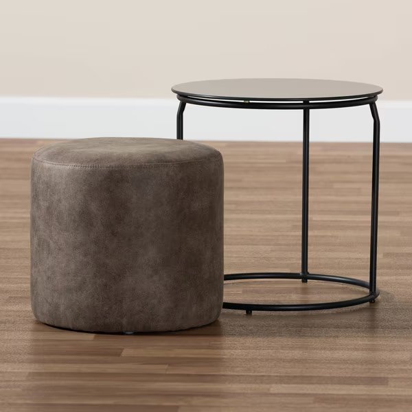 Kira Black with Grey and Brown 2-Piece Nesting Table and Ottoman Set, Baxton Studio, Mfr#: 160-9917