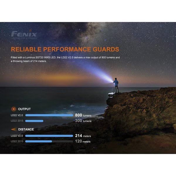 | Includes | Fenix LD22 v2.0;Fenix ARB-L14-1100U Rechargeable Battery;2xPairdeer AA Alkaline Batteries;USB-C Charging Cable;Holster;Lanyard |
