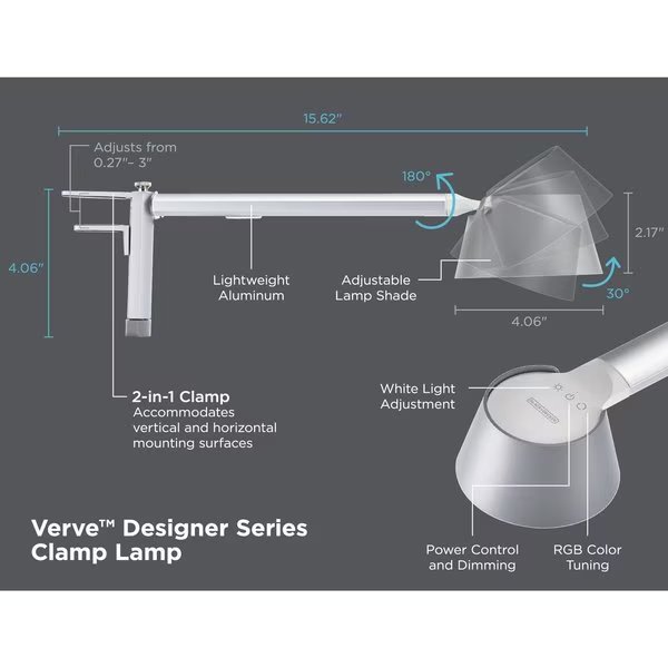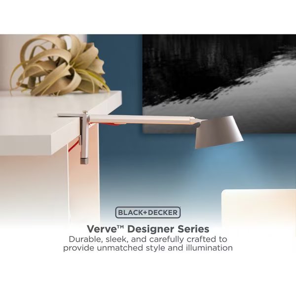 Brilliant design meets convenient control with our BLACK+DECKER Designer Desk Lamp with Clamp Base that seamlessly brings light to your workspace with three touch-capacitive buttons that allow easy dimming and color adjustment.