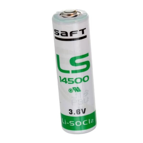 SAFT LS14500 Size AA 3.6V 2600mAh Primary Lithium Thionyl Chloride (Li-SOCl2) BatteryLithium Thionyl Chloride has the highest energy density of any practical Lithium battery chemistry, three times greater than Alkaline (Zinc Manganese Dioxide) batteries. It also has the widest operating temperature range of -60°C to + 85°C. This battery has high energy, high reliability 3.6 volt power source, excellent memory backup power source, and a low self discharge rate gives this cell a 10 year shelf life. Saft products are utilized in smart utility utility marketmeters and industrial applications where performance is essential. With termination and fusing options, our cells can be integrated into your metering design