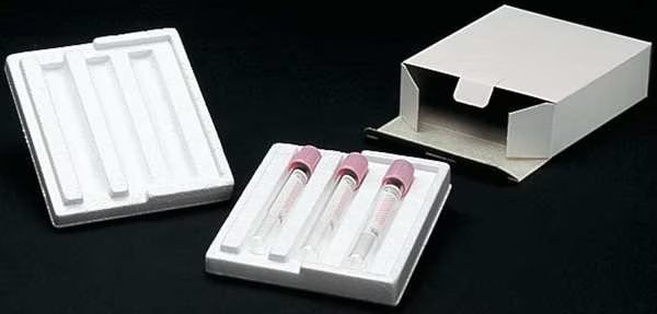Lab Tube Mailer, Outside Height - English 1 1/2 in, Inside Length - English 6 5/8 in, Inside Height - English 5/8 in, Holds Container Style Lab Tubes, Holds Number of Tubes 5, Holds Number of Slides Not Applicable, Holds Maximum Tube Diameter 16 mm, Holds Maximum Tube Length 101.6 mm, Holds Slide Length Not Applicable, Holds Slide Width Not Applicable, Material Polystyrene, Color White, Standards DOT, IATA, Outside Length - Metric 200.15 mm, Board Test 32 ECT, Package Quantity 100