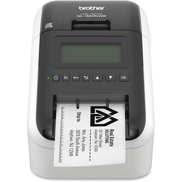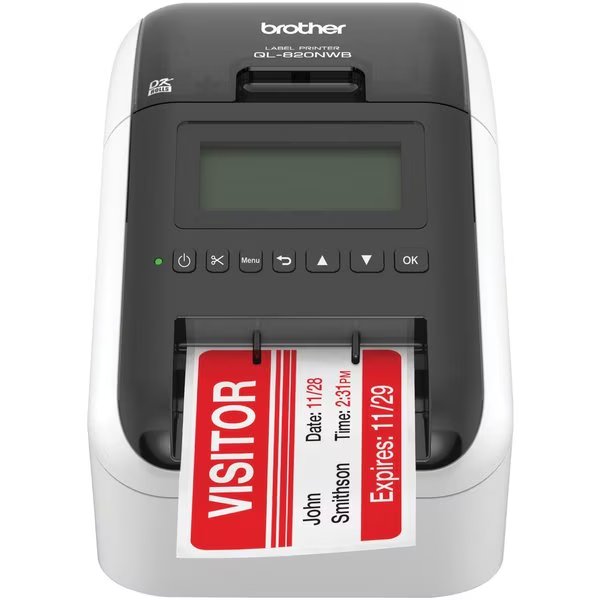 Label Printer, Overall Length 9-13/64", Material: Plastic, Brother, Mfr#: QL-820NWB