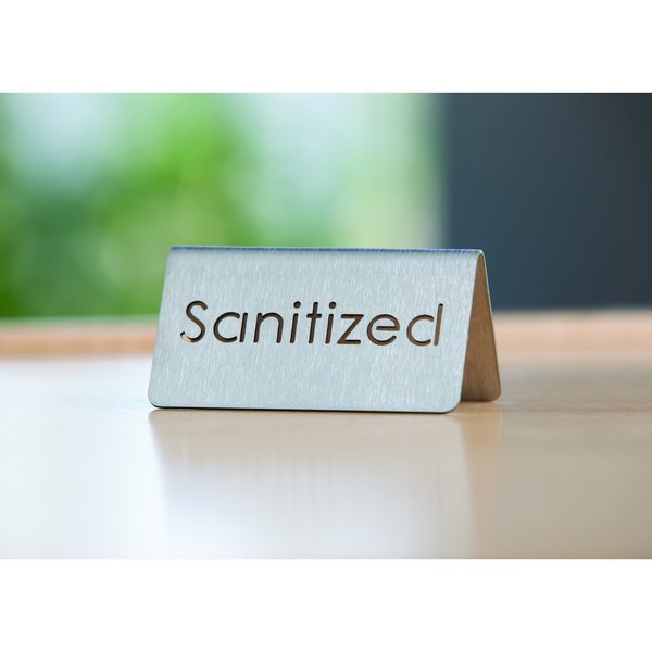Laser Cut Table Tent, Sanitized, Brushed, Service Ideas, Mfr#: 1C-BF-SANITIZED-MOD