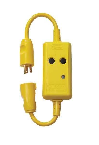 Line Cord GFCI, Cord Length 1.5 ft, Color Yellow, Max. Amps 15 A, Plug Configuration NEMA 5-15P, Receptacle Configuration NEMA 5-15R, Enclosure Rating Watertight, Number of Outlets 1, Trade Designation SJEOW, Voltage 120V AC, Hz 60, Wire Size 14 AWG, Number of Conductors 3, Housing Material PVC