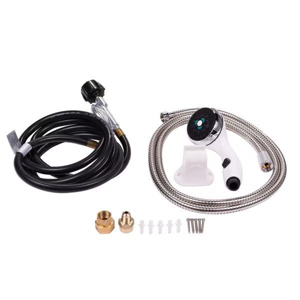 | Includes | 1x Eccoflo 12V Pump and Strainern1x 3-spray Shower Headsetn1x 3.5' CSA Certified Gas Regulator and Hosen1x Mounting Hardwaren1x Garden Hose Quick Connect and Adaptern1x Product Manual |