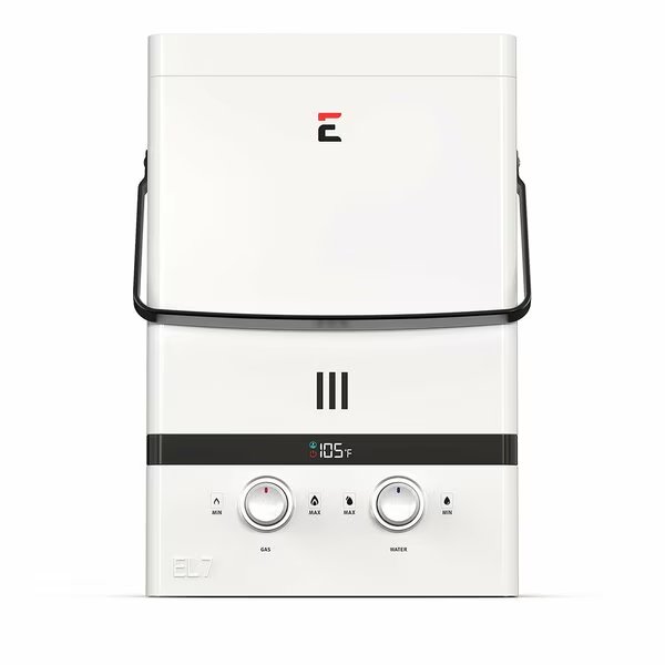 The Eccotemp EL7 Portable Tankless Water Heater is the number “1” trusted and sold CSA approved portable tankless water heater. The EL7 was meticulously designed in Summerville, SC. This Eccotemp EL7 Portable Tankless Water Heater features an Extreme All-Weather Rain Cap and a Tri-Coat Pearl White painted outer body. Inset Knobs increase your water heater’s durability and longevity. The steel designed Carrying Handle allows you to take your hot water anywhere.