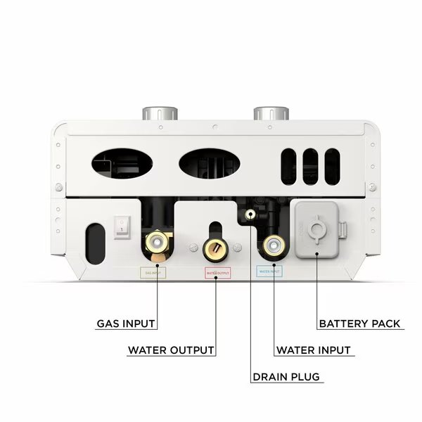 The EL7 also comes with a bright, clear Digital Temperature Display with ON/OFF and Pressure Indicator Lights. The Advanced Pressure LED Indicator Light takes all the guesswork out of wondering if you have enough water pressure, unlike any other water heater on the market! The Digital ON/OFF LED Indicator powered by 4 x AA batteries lets you know when the water heater is on or off. The adjustable Water and Gas Knobs allow you to set the precise, ideal outgoing water temperature.