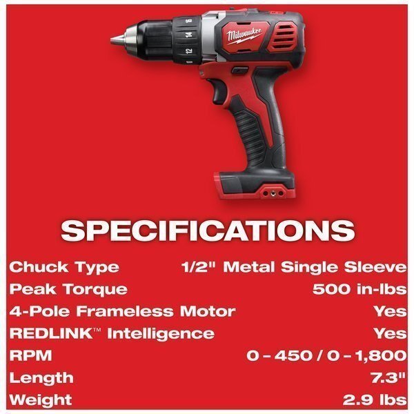 M18 Compact 1/2 in. Drill Driver Kit, Milwaukee Tool, Mfr#: 2606-22CT