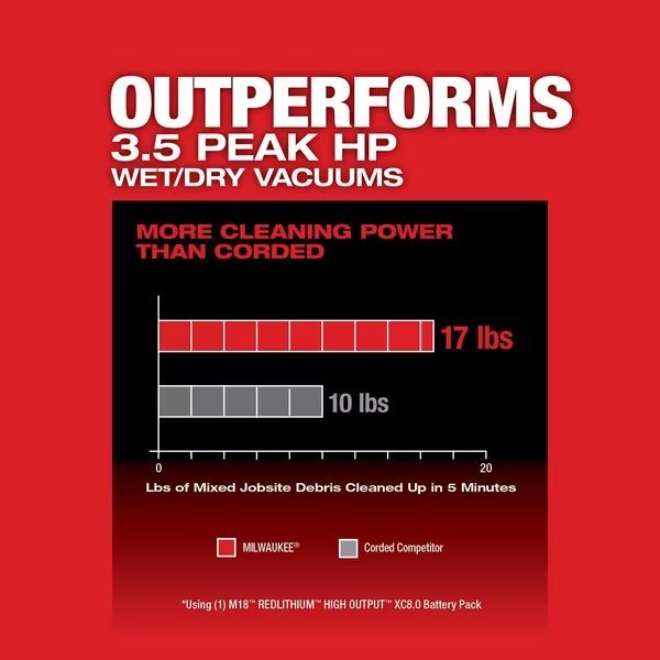 M18 FUEL 6 Gallon Wet/Dry Shop Vacuum (Tool Only), Milwaukee Tool, Mfr#: 0910-20
