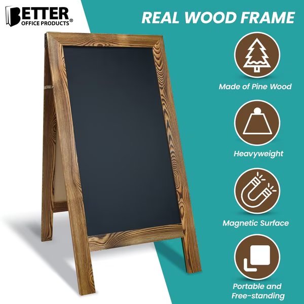 Magnetic A-Frame Chalkboard, 20inx40in Standing Easel, Deluxe Set, Rustic Brown, Better Office Products, Mfr#: 00851