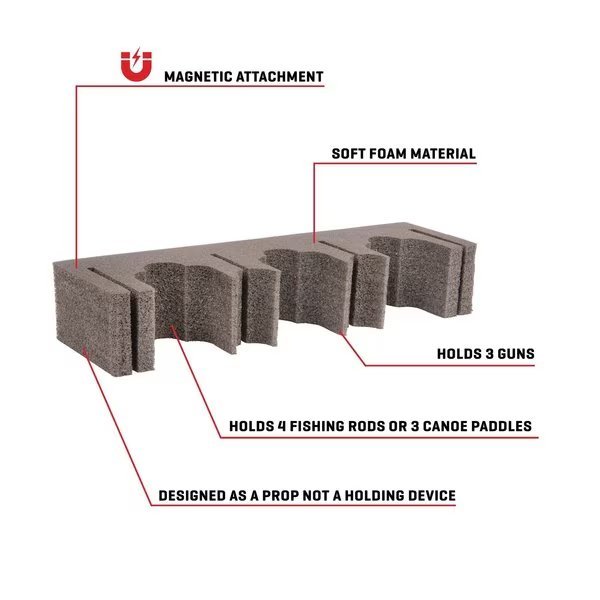 The Allen Company Magnetic Firearm & Fishing Rod Holder is a necessity for any hunting and/or fishing enthusiast. The magnetic mount works well as a divider and can be easily attached to most walls of gun safes or iron-based metal body panels of most cars and trucks. Designed for easy placement and convenience, apply to a parked vehicle by magnetically attaching to your car to store your rod or gun while you gear up for the range or stream. The device is constructed with cast metal with a soft foam material, preventing damage to your equipment. The Allen Company Magnetic Firearm & Fishing Rod Holder will securely hold up to 4 fishing rods or 3 guns at a time. FIREARM & FISHING ROD HOLDER: The magnetic device holds 3 guns or 4 fishing rods at a time-compatible with most fishing rods and/or firearms. EASY PLACEMENT & REMOVAL: Designed with a coated, magnetic back panel, the mount can easily be attached to most walls of iron-based metal body panels such as cars, trucks, or storage cabinets without scratching. SOFT FOAM MATERIAL: Device is constructed of cast metal with a soft foam material to prevent damage to your investments. DIMENSIONS: Magnetic device measures 2-inches long x 11-inches wide x 3-inches high.