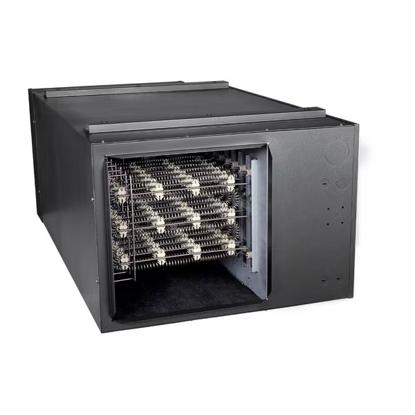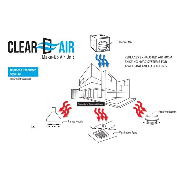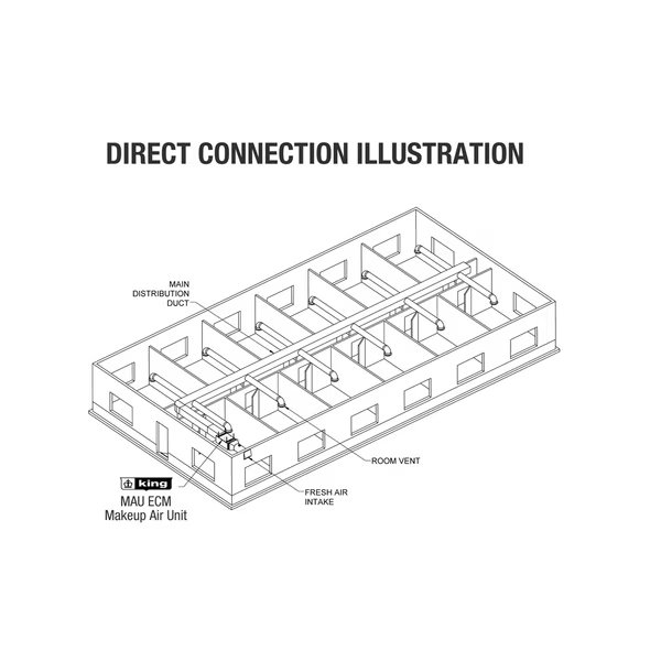 The King Clear Air Make-Up Air Unit is designed to “make up” the air in your interior space that has been removed due to process exhaust fans. The building ventilation and the make-up air system work together to ensure the building pressure is maintained, while eliminating temperature fluctuations and a number of air quality issues. Clear Air MAU preheats the incoming fresh air at the lowest cost, thus continuously providing comfortable ventilation throughout the building. Featuring an energy efficient ECM motor, the Clear Air combines a fan driven fully modulating electric heating unit with a fresh air relay logic control circuit providing an extremely versatile all-in-one packaged unit. It is designed to work with HVAC equipment to provide indoor air quality into a return side or supply side of the ductwork system or alternatively directly into the building space. Packaged, All-In-One Make Up Air Solution. 700-1770 CFM @ 0.2” Static Pressure. 5kW to 34.5kW Models Available. Proportional Thermostat For Fully Modulating Electric Heat. Wide Range of Air of CFM, Temperature Rise & Static Pressure Configurations. Energy Efficient ECM Motor with 5 Torque Taps. Available in 208/240V/480V - Single & Three Phase. Included Duct Sensor For Precise Set Points. Automatic Damper Control. Current Transformer Technology For Full Interlock With Exhaust Systems. Relay Logic Control Circuit Enabling Control of Other Make-Up Air Components (Damper, Exhaust Fans, Outside Thermostat & Humidistat, Etc). Horizontal or Vertical Installation. Compact Footprint. Replaceable Air Filter (1" or 2" thick). Shown with MAUFH Filter Housing (Required and Sold Separately).