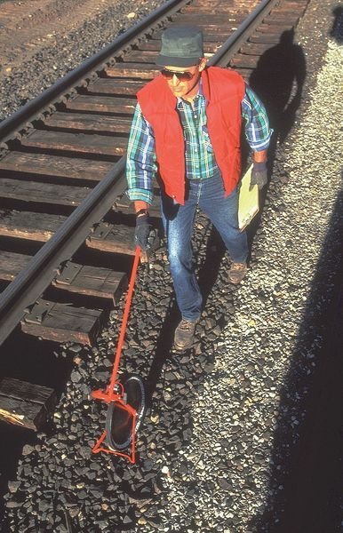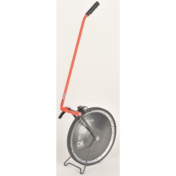 The Rolatape 32-415 Measuring Wheel is a heavy duty tool that will prove useful for construction, surveying and landscaping projects. This measuring wheel has a single wheel with a circumference of 4 ft. The steel rim and tread are durable and tough enough to withstand the demands of the job. It comes in safety glo orange color so it can be easily seen in dark or low light conditions. The measurements on this mechanical measuring wheel are in feet. With its rugged construction, you can rely on the Rolatape Measuring Wheel for your next project.