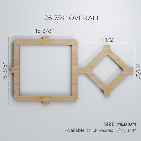 Available in paint-grade, oak, cherry, alder, walnut, hickory, and birch allowing for great strength and durable usage. The natural wood tones evoke luxury and sophistication in any space. You can leave your design mark with unique and inspiring effects on your walls, cabinetry, ceilings and more. Our easy-to-install wood panels can turn a room into a work of art in no time at all. Our distinctive wood fretwork panels add instant value to your home and stand apart from everything else on the market.Assembled Dimensions: 26 7/8"W x 15 3/8"H (covers 2.56 square feet per panel)