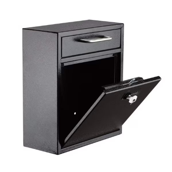 Constructed from 16-Gauge galvanized steel, the AdirOffice holds keys, cash, other important materials. Perfect for a variety of establishments, it features an anti-fishing bin door and an anti-pry latch locking mechanism. The access door features a commercial grade 12-disc wafer lock and 2 laser cut keys to secure items. This powder-coated, scratch-resistant finish mailbox is the most convenient solution for after-hours collections.
