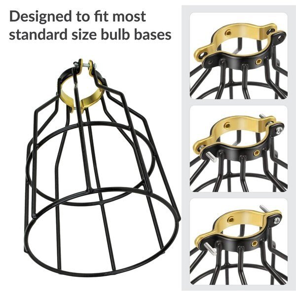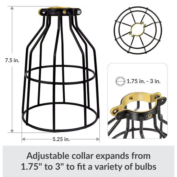 The metal lamp guard by Newhouse Lighting is built with 16-gauge vinyl coated metal wiring. With its adjustable screw tightening clamp, the lamp guard fits virtually all string lights, porcelain and plastic lamp holders, pendant light fixtures, ceiling fan light covers, and can even be used as small lamp shades. These metal lamp guards are also very popular for decorations in urban settings; especially when combined with edison style filament light bulbs! . In addition to the aesthetic benefits, these functional lamp guards are also a great glass bulb and lamps protector when installed in basements, work sites, globe fixtures, fans, and exposed ceiling covers.