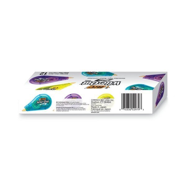 BIC® Wite-Out Brand Mini Correction Tape, Non-Refillable, 1/5" w x 26.2 ft, Assorted, Dozen